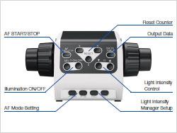 使用电动调焦装置可以大幅提高操作性,并减少了进行聚焦和高度测量时的操作疲劳。粗微调焦的同轴旋钮设计使使用者可以以习惯的类似手动的方式进行操作,同时电动机型还可以配备自动聚焦单元。 |